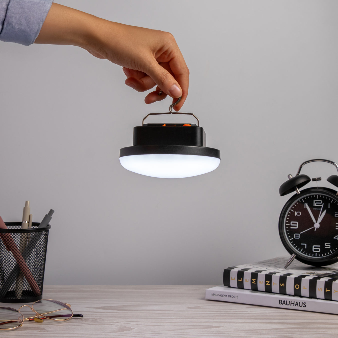 Quick, cordless, and secure. Press the button on the back to switch between High, Medium, Low, SOS, or turn it off.